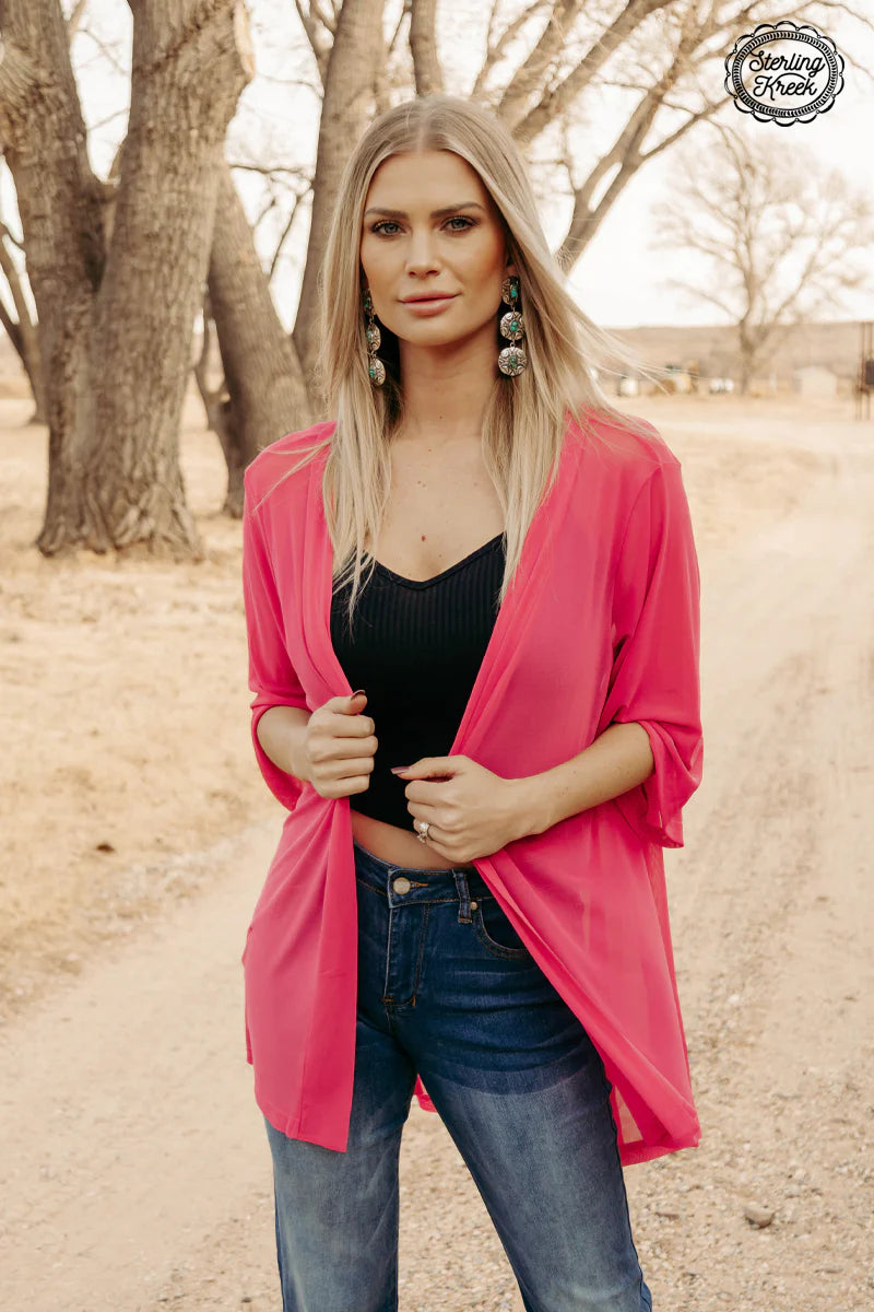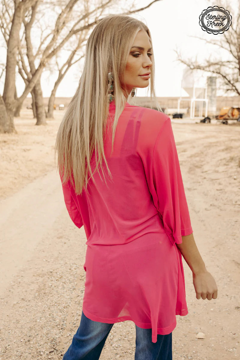 Be the standout in this Rosa Kreek Cardigan! Perfect for any event, this pink mesh cardigan will bring a bit of pizzazz into your wardrobe. With its fun, flowy fit, it's sure to turn heads - so get ready for compliments to come a-knockin'!