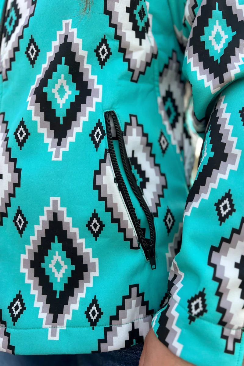 • Stay warm and stylish in The Blue Ridge Jacket - the perfect combination of functionality and fashion. Made of soft shell material, this turquoise jacket will keep you cozy while turning heads. Don't compromise on style or comfort, get the best of both worlds with The Blue Ridge Jacket.