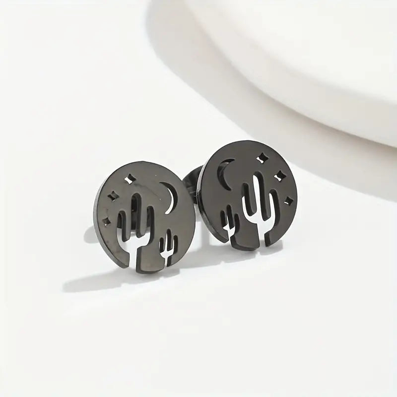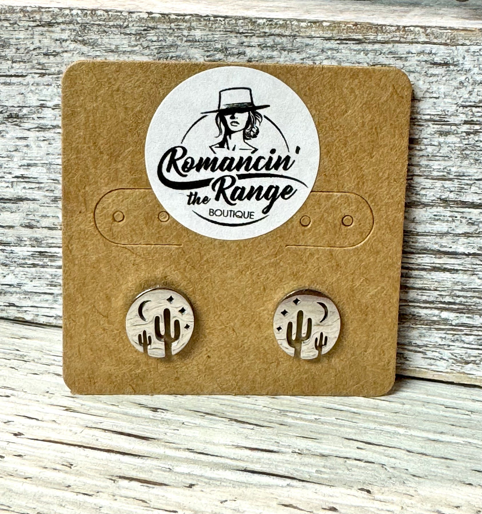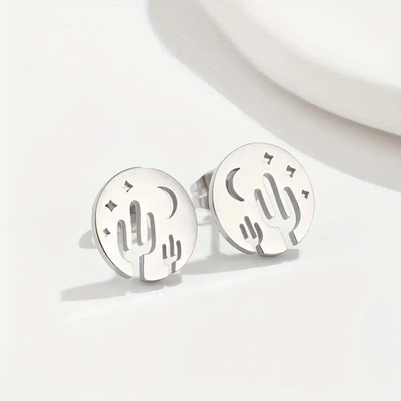 - These stud earrings measure appx 3/8" and are just perfect for everyday wear. The cute cactus moon & stars are cut out on a stainless steel base.