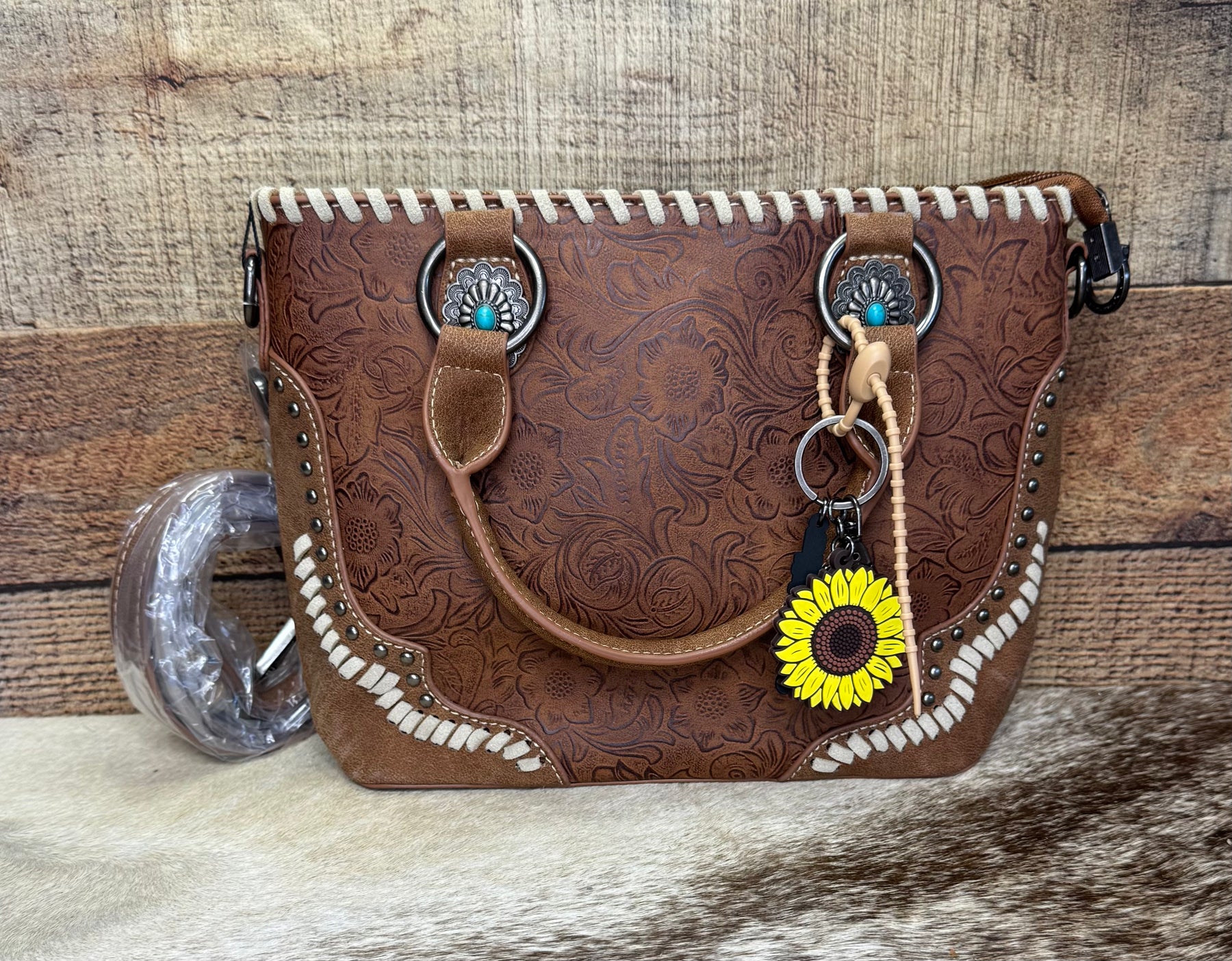 Whipstitch detail ,antique silver studs