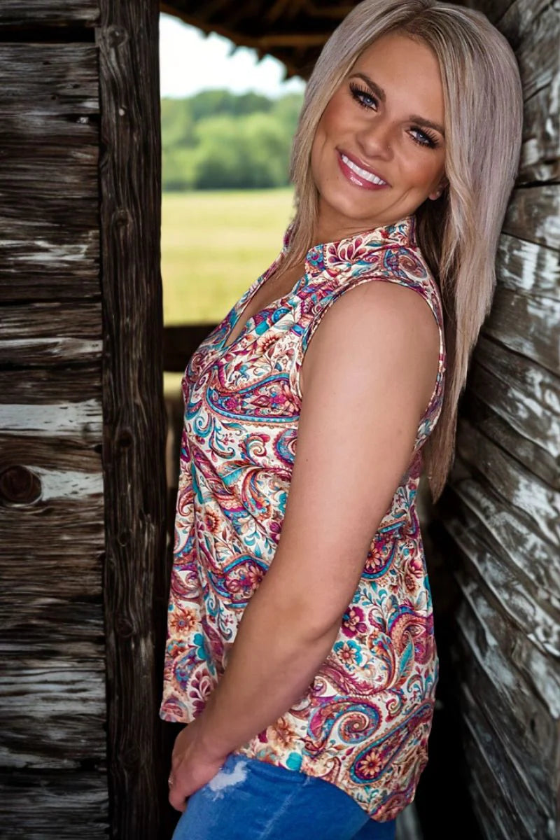 Looking for a top that's not just cute but also comfy and fun? Look no further! Sterling Kreek's Play It Safe Top features a playful paisley pattern that will bring life to any outfit. Plus, it's super comfortable to wear. Play it safe and add this top to your wardrobe today!